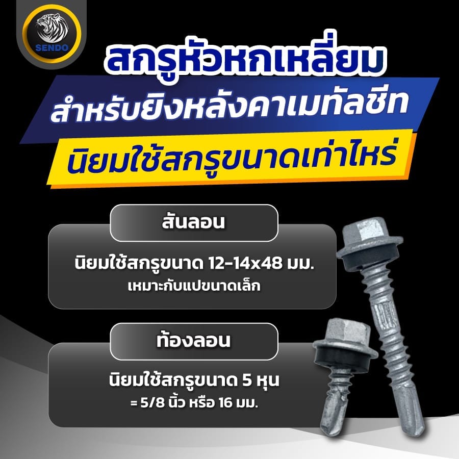 สกรูหัวหกเหลี่ยม สำหรับยิงหลังคาเมทัลชีท นิยมใช้สกรูขนาดเท่าไหร่