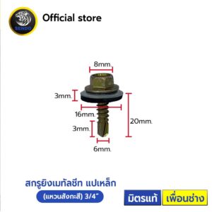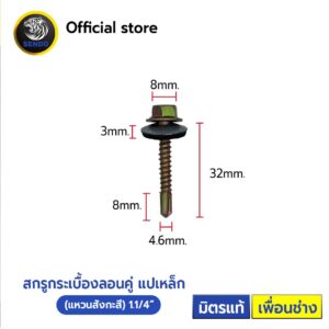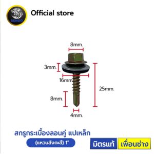 สกรูกระเบื้อง ลอนคู่ (แปเหล็ก) แหวน