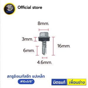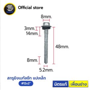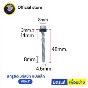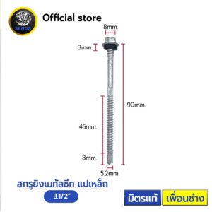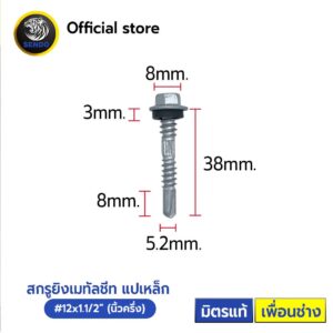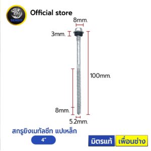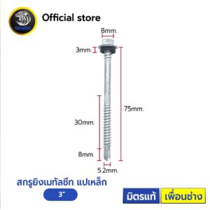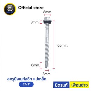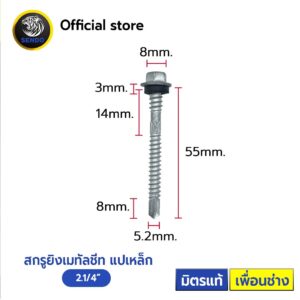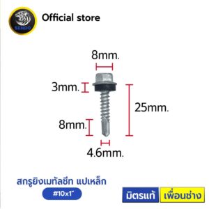 สำหรับติดตั้งแผ่นหลังคาเหล็กเมทัลชีทเข้ากับแปสำเร็จรูปหรือแปเหล็ก ตัวสกรูออกแบบให้มีแง่งตรงกลางเพื่อให้ให้ยึดแน่น สกรูผ่านการเคลือบกันสนิมอย่างดี รวมถึงป้องกันน้ำรั่วซึมด้วยยางซีลEPDM จำนวนย่อย : 100ตัว/แพค